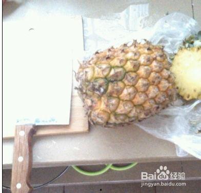 首先,将菠萝洗净,放在案板上。用一把锋利的刀,沿着菠萝的凹槽处,将外皮削去。注意,刀要倾斜,这样削出的皮才会更加均匀。
